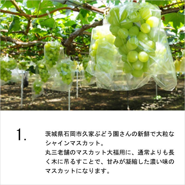 茨城県の老舗ぶどう園「久家ぶどう園」の大粒シャインマスカットをまるごと包み込みました。